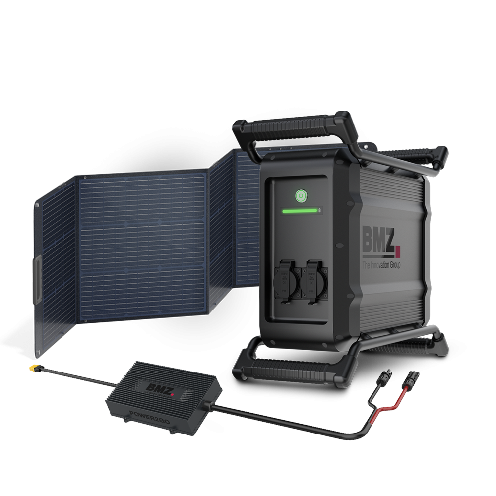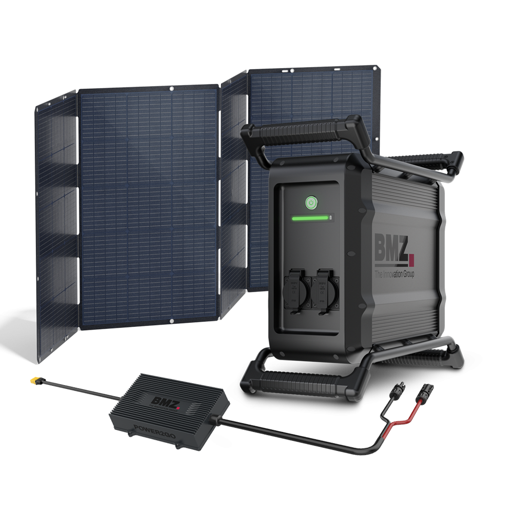 Discover our POWER2GO WORK bundle! Combine the powerful energy storage system with our foldable solar panel for ultimate mobile energy on the construction site and on the go.